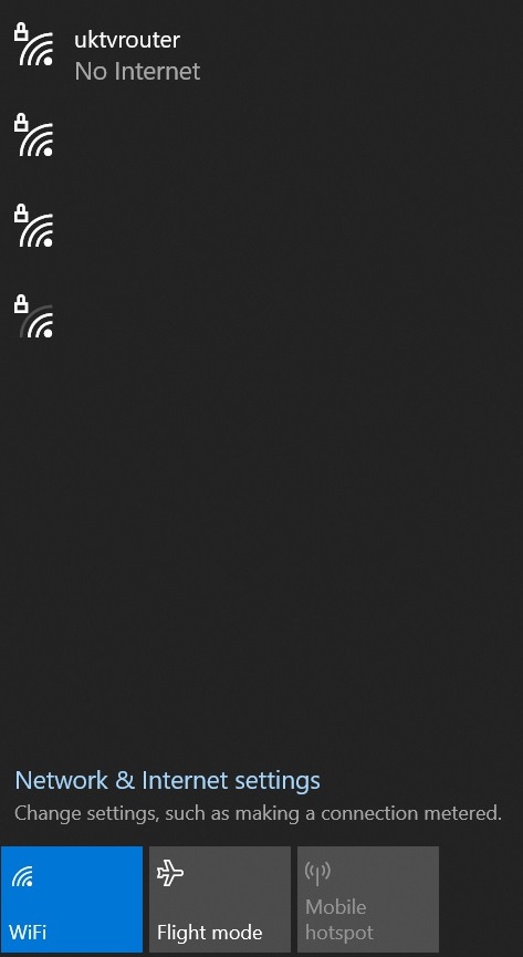 4. Connect to your OpenWRT Router (if provided by us, then it will be called UKTV Router), either via Wifi or Ethernet cable.