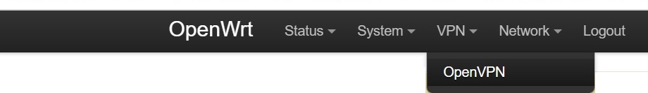 7. On the OpenWRT toolbar, click on VPN, and Click on OpenVPN